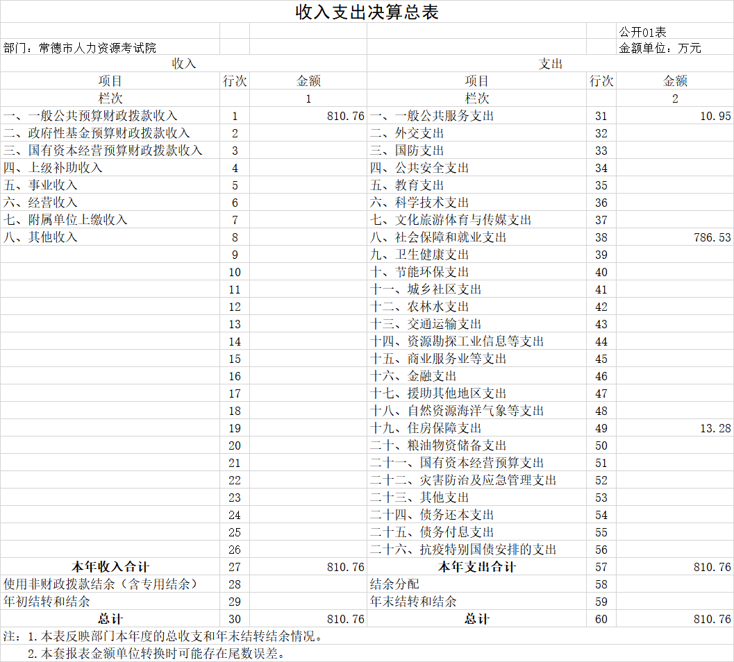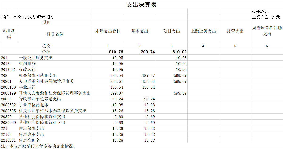 (二)决算单位构成。本单位2024年部门决算公开单位构成包括:本单位无所属二、三级预算单位,故2024年部门决算编制范围的为常德市人力资源考试院单位本级。