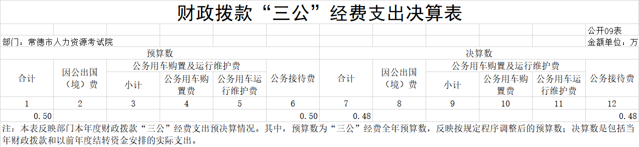 2、公务接待费支出决算为0.48万元,全年共接待来访团组4个、来宾30余人次,主要是省考试院、其他市州考试院来常公务活动发生的接待支出。