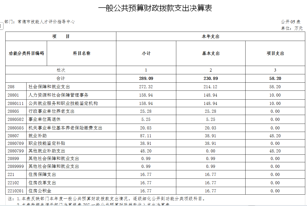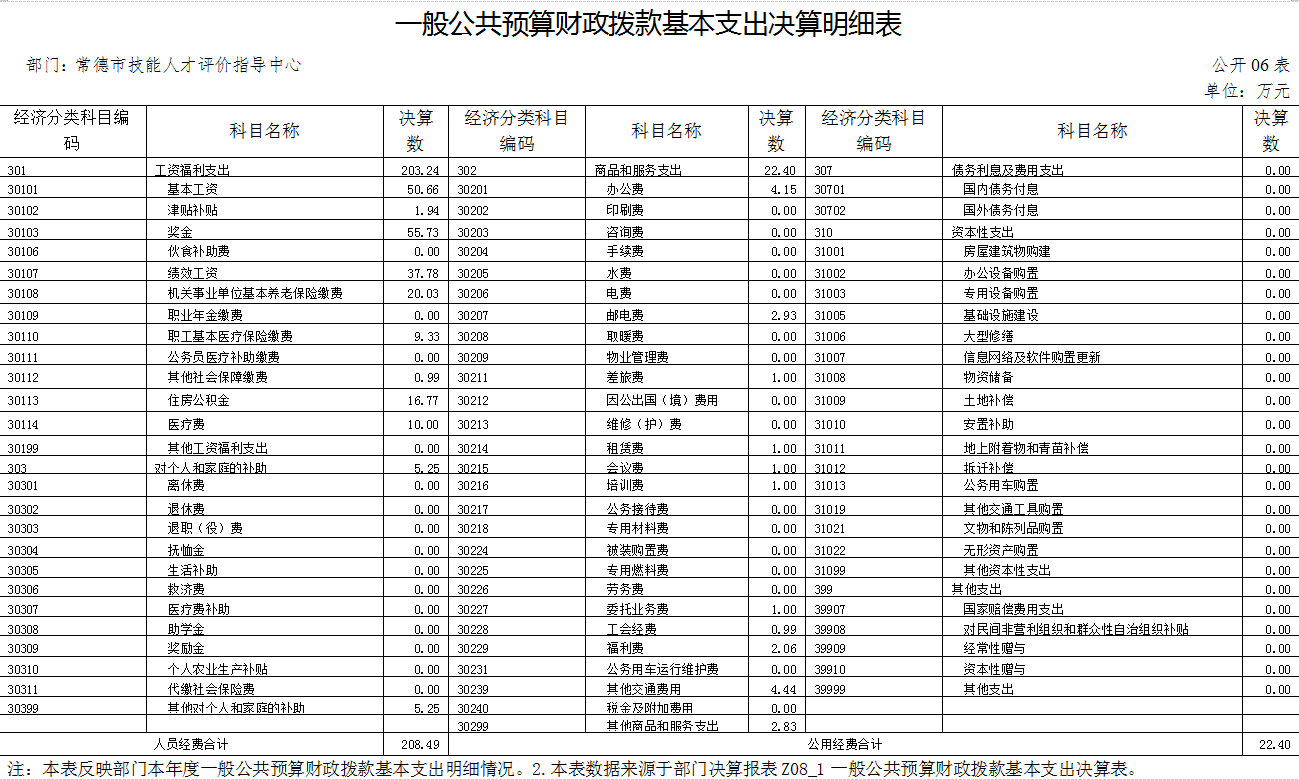 预算单位名 称 | 常德市技能人才评价指导中心 | |||||||||||