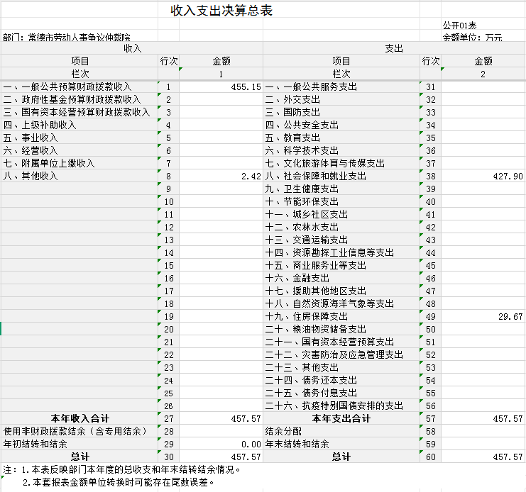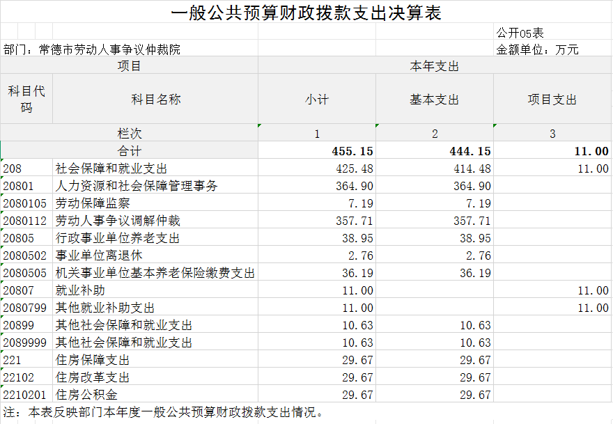 (二)决算单位构成。本单位无所属二、三级预算单位,故2024年部门决算编制范围的为常德市劳动人事争议仲裁院单位本级。