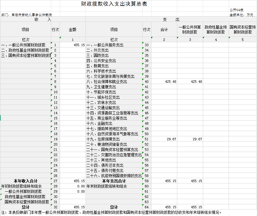 2024年度财政拨款收入总计455.15万元。与上年相比,增加158.38万元,增长53.37%,主要是因为:一是机构改革,原市劳动保障监察支队人员转隶至我单位,相关财政拨款收入支出增加;二是工资晋级晋档,人员经费增加。财政拨款支出总计455.15万元。与上年相比,增加158.38万元,增长53.37%,主要是因为:一是机构改革,原市劳动保障监察支队人员转隶至我单位,相关财政拨款收入支出增加;二是工资晋级晋档,人员经费增加。