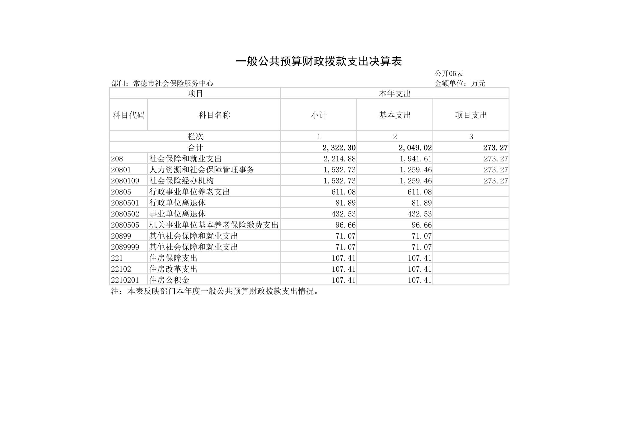 2024年度一般公共预算财政拨款支出2322.30万元,主要用于以下方面:社会保障和就业(类)支出2214.89万元,占95.37%;住房保障(类)支出107.41万元,占4.63%。