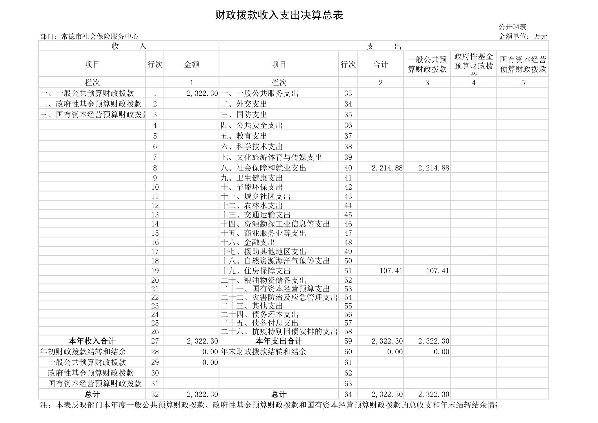 四、财政拨款收入支出决算总表