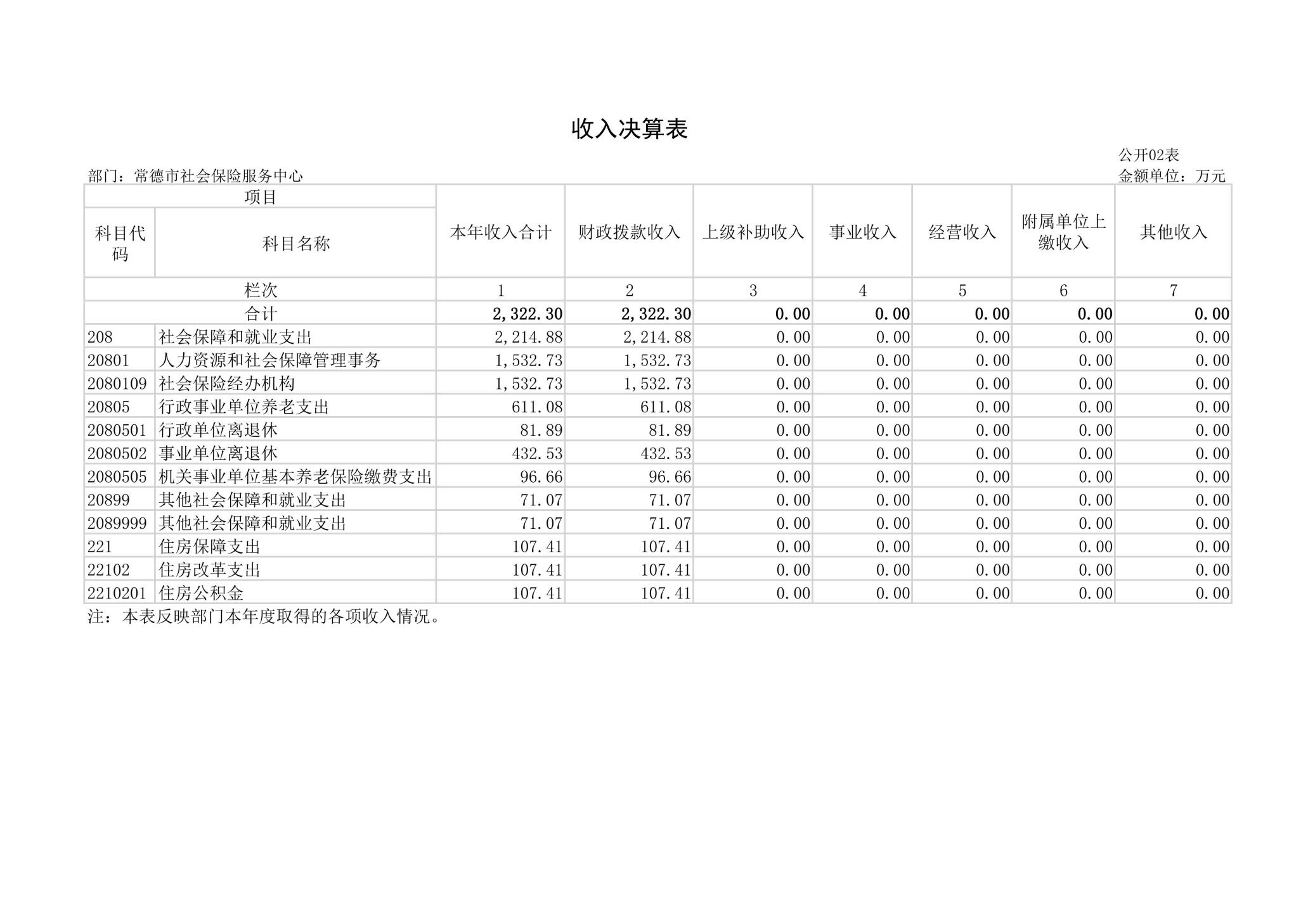 二、收入决算表