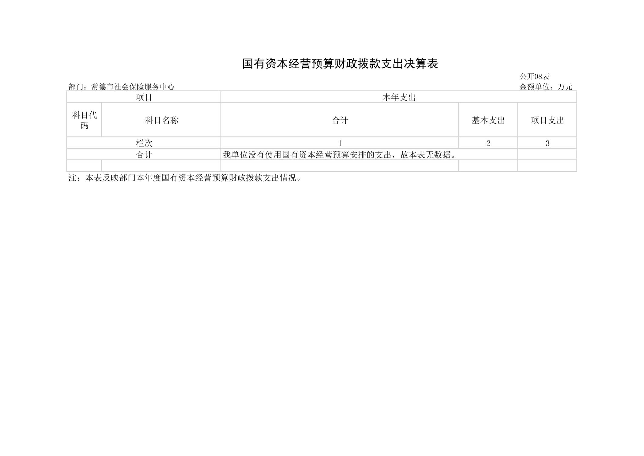 八、国有资本经营预算财政拨款支出决算表