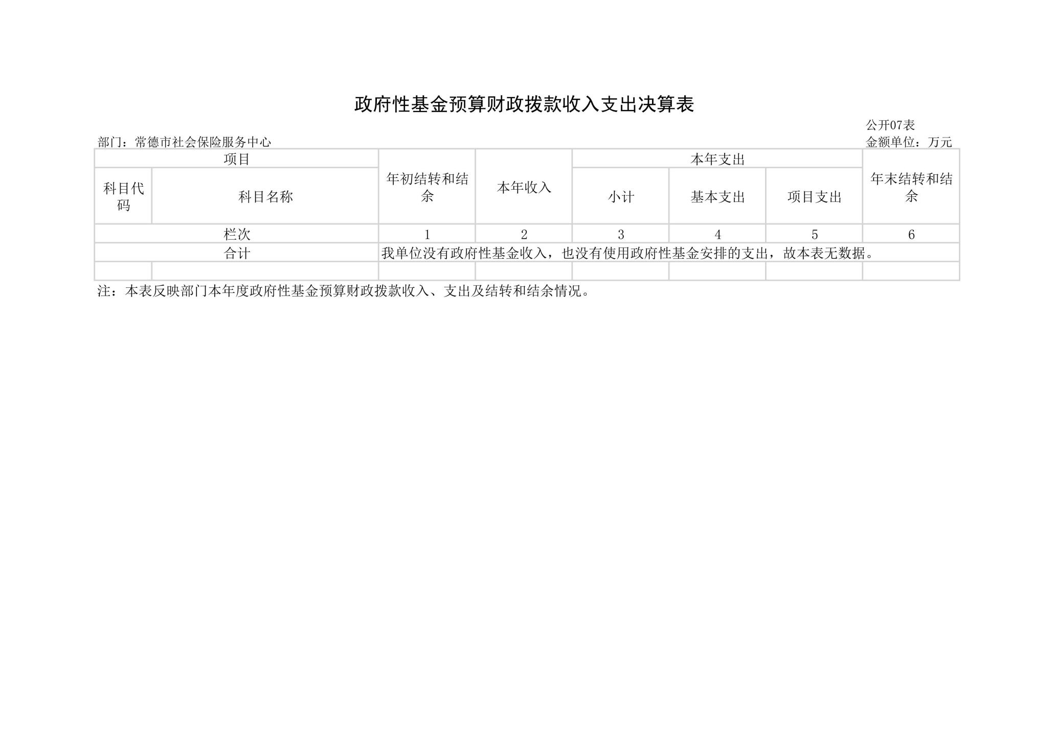 七、政府性基金预算财政拨款收入支出决算表